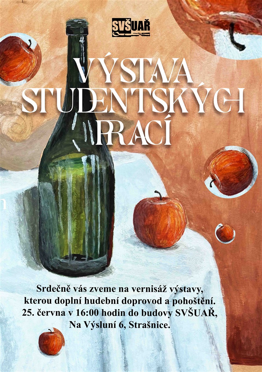 Střední škola a vyšší odborná škola umělecká a řemeslná (SVŠUAŘ) si dovoluje pozvat na vernisáž výstavy uměleckých oborů školy, která se uskuteční 25. června v 16.00 hodin v budově školy Miramare ve Strašnicích.