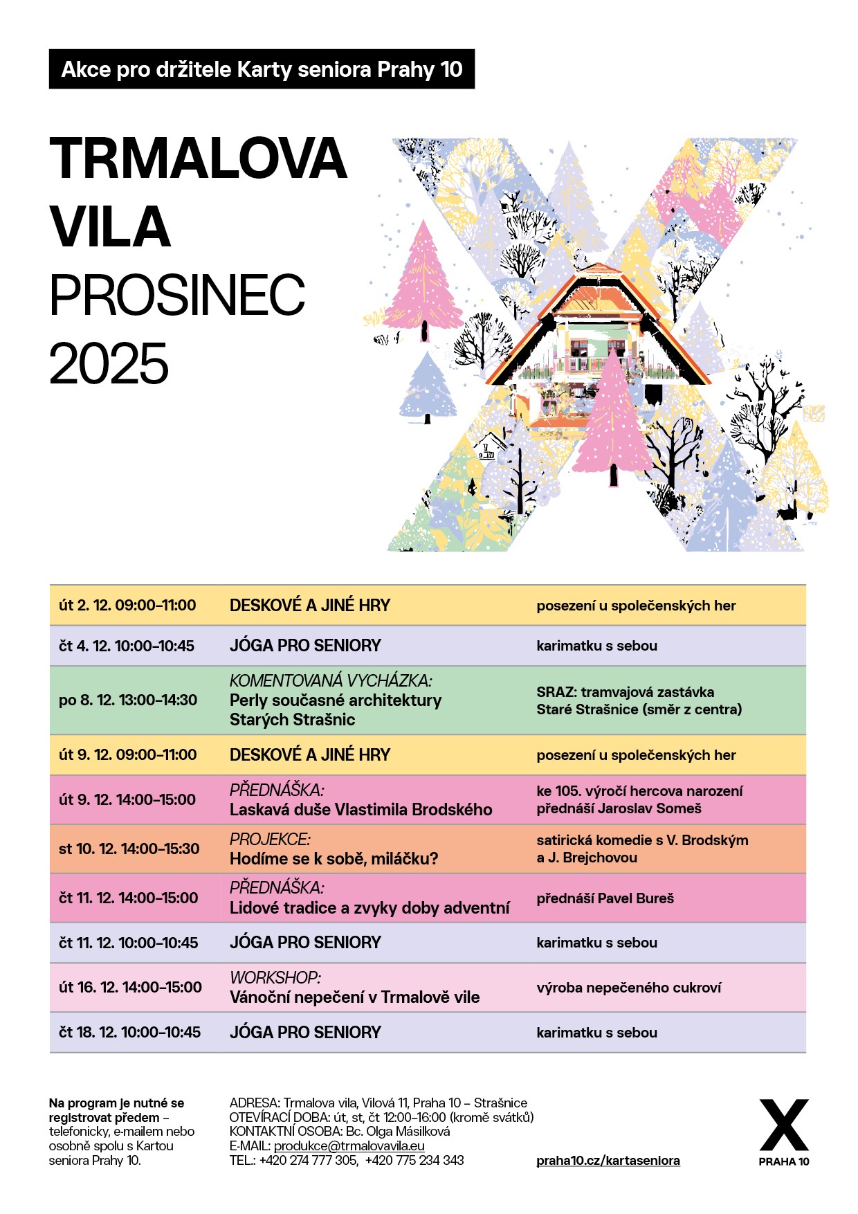Otevírací doba Trmalovy vily pro registraci na program – Karta seniora Prahy 10: