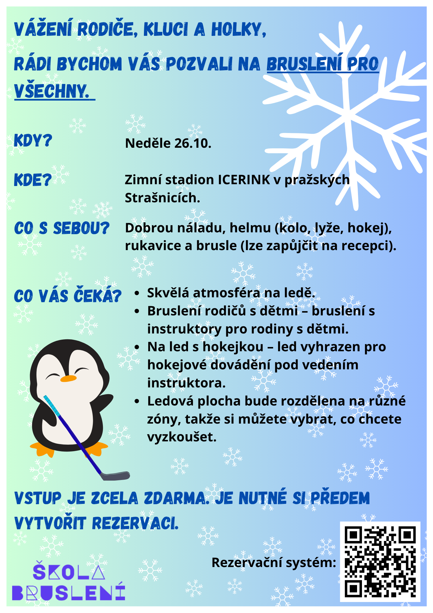 Neděle 26. října zimní stadion ICERINK ve Strašnicích (Přetlucká 3422/23, Praha 10)