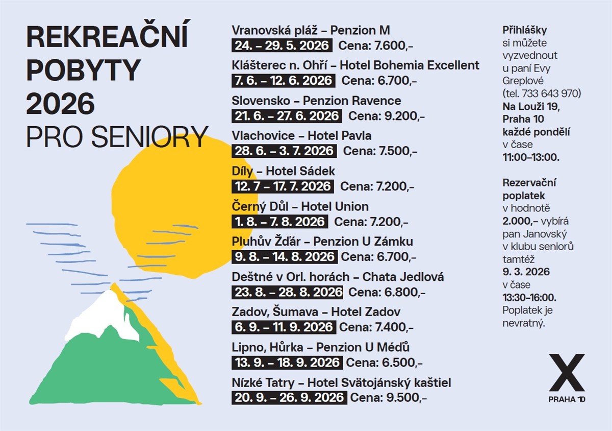 Rezervační poplatek v hodnotě 2.000 Kč vybírá pan Janovský v klubu seniorů tamtéž 9. 3. 2026 v čase 13:30–16:00. Poplatek je nevratný.