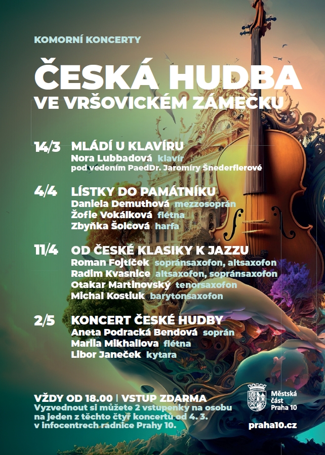 4. dubna se uskuteční od 18:00 hodin koncert ve Vršovickém zámečku.