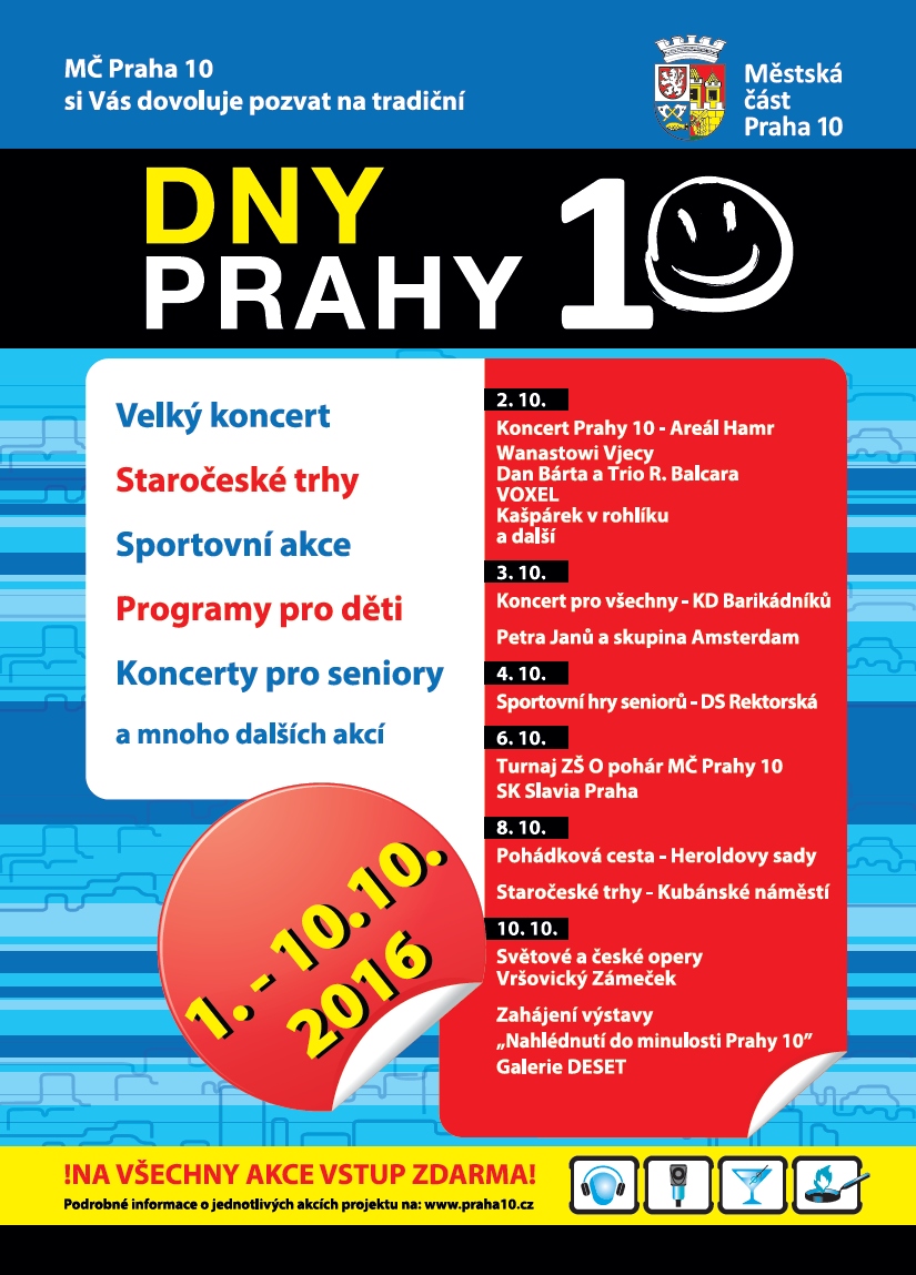 Vzhledem k omezené kapacitě sálu je vstup možný pouze na základě předložené vstupenky. Vstupenky jsou k dispozici v informační kanceláři ÚMČ Praha 10, Vršovická 1429/68, Praha 10, zdarma pro občany MČ Praha 10.