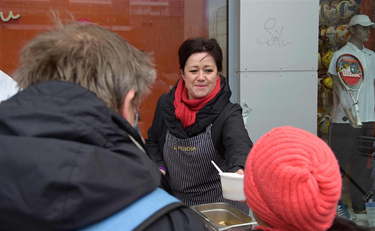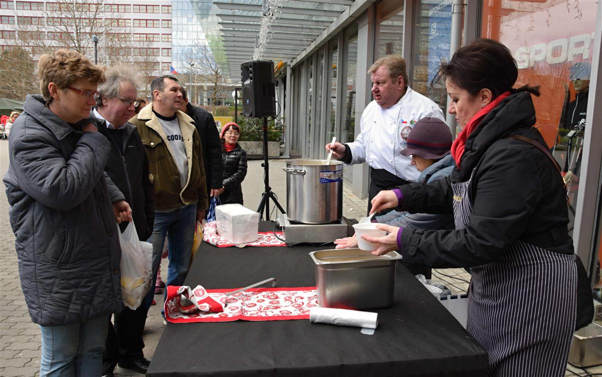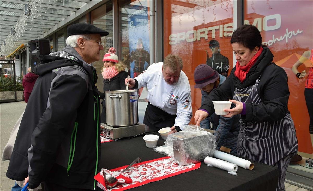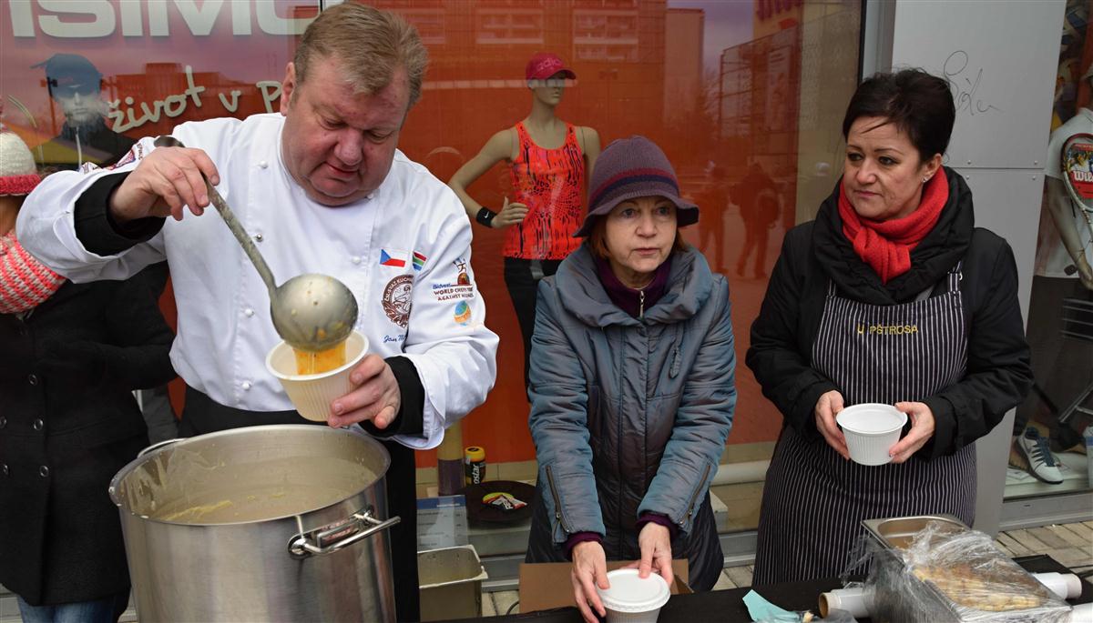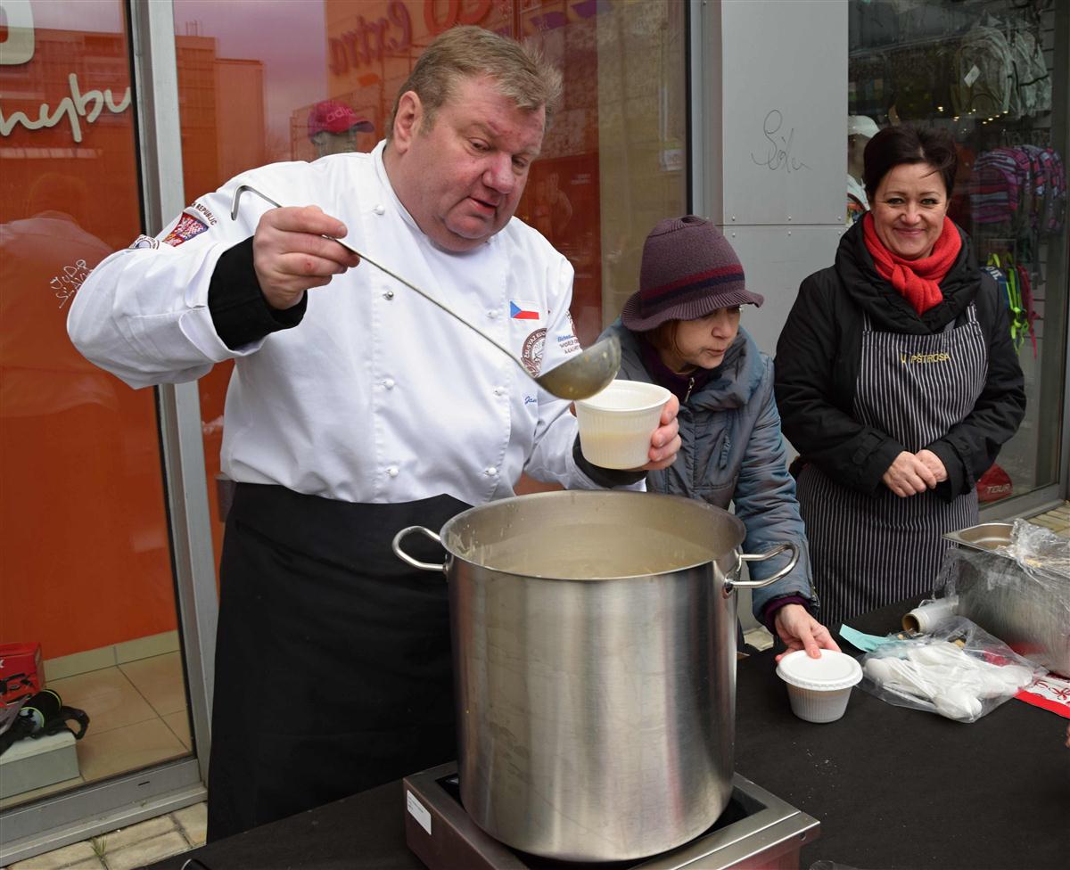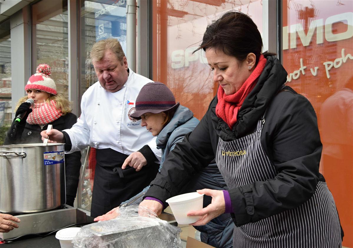 Starostka Prahy 10 Radmila Kleslová spolu s šéfkuchařem a ex-kapitánem reprezentace ČR kuchařů Janem Michálkem rozlévla rybí polévku. Na Štědrý den tak u vršovického Edenu zpříjemníla sváteční den spoustě spoluobčanů.