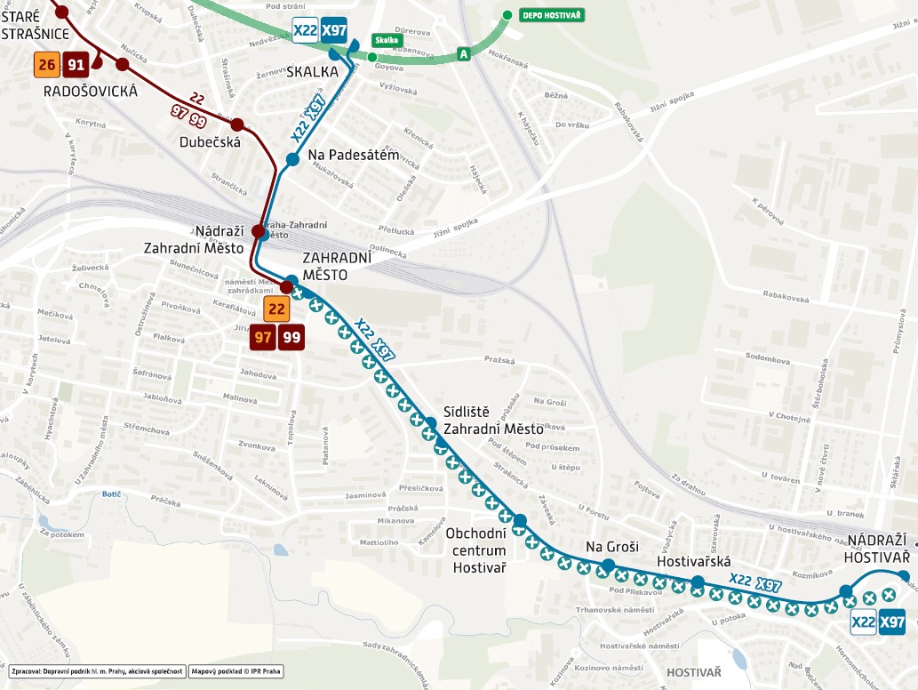 Z důvodu opravy tramvajové trati dochází od čtvrtka 1. května 2025 (přibližně od 4.30 hodin) do pátku 30. května 2025 (přibližně do 24.00 hodin) k dočasnému obousměrnému přerušení provozu tramvají v úseku Zahradní Město – Nádraží Hostivař.