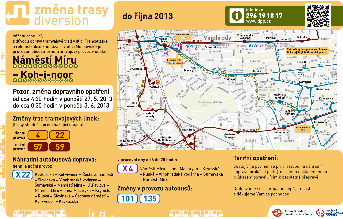 V pondělí 27.5.2013 zahájí Pražská vodohospodářská společnost a.s. obnovu vodovodu a kanalizace v soutěsce Moskevské (úsek Francouzská – Rostovská), která je prvním krokem dlouhodobě plánované revitalizace celé ulice. Akce tak prakticky navazuje na obnovu tramvajové trati ve Francouzské ulici, na které by měl být provoz obnoven nejpozději do 2.6.2013 s tím, že se již budou pouze dosazovat sloupy trakčního vedení. V souvislosti s tím dojde k úpravě trasy linek MHD, které se pak znovu změní s otevřením Francouzské ulice.