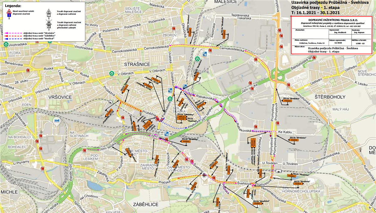 Od 16. do 30. ledna 2021 bude v souvislosti s realizací stavby „Optimalizace traťového úseku Praha Hostivař – Praha hl.“ uzavřena Průběžná ulice v úseku Švehlova – Na Padesátém, a to pro veškerou dopravu, včetně pěší a MHD.