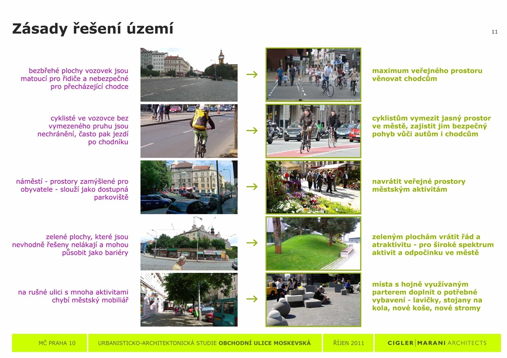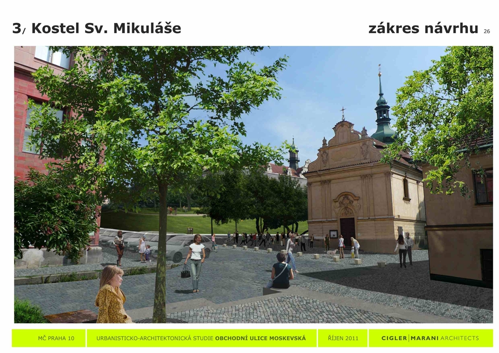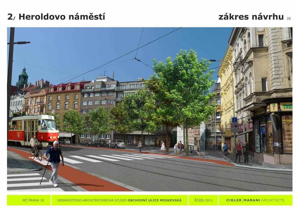 Výsledná podoba prostoru bude mít nové dopravní uspořádání, nové povrchy chodníků i vozovky a bude doplněná o zeleň a mobiliář. Průběh rekonstrukce bude mít několik fází, kdy bude postupně docházet k různým druhům prací v různých částech Francouzské a Moskevské ulice.