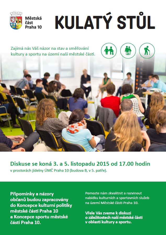 Zveme Vás na pracovní setkání, která se konají 3. a 5. listopadu od 17:00 hodin v 5. patře budovy B ÚMČ Praha 10.