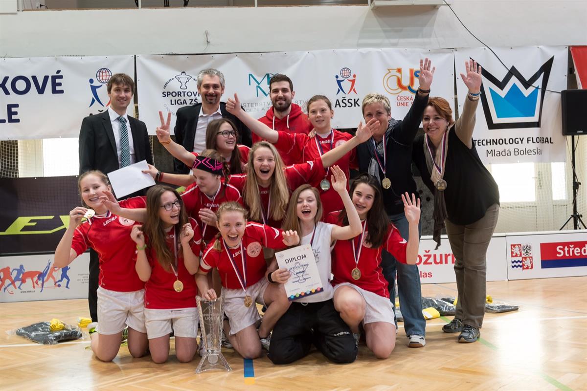 Žákyním naší školy Markétě Svačinové (C), Denise Křížové (G), Andree Krasanovské, Nikole Hladíkové, Anetě Vlkové, Tereze Vlkové, Julii Šmídové, Lucii Hroňkové a Kateřině Tučkové se pod vedením paní učitelky Hůlové podařilo neuveřitelné! Děvčata prošla vítězně všemi koly Poháru ministryně školství až do finále v Mladé Boleslavi, kde je čekalo pět dalších také dosud neporažených soupeřek. "Bojovnost a nasazení, jaké jsem v týmu během dvou finálových dní u našich děvčat viděla, bylo pro mě skutečně životním sportovním zážitkem a jsem moc ráda, že jsem u toho mohla být," říka ředitelka školy Jana Churáčová. O průběhu finálového kola se můžete dočíst níže: