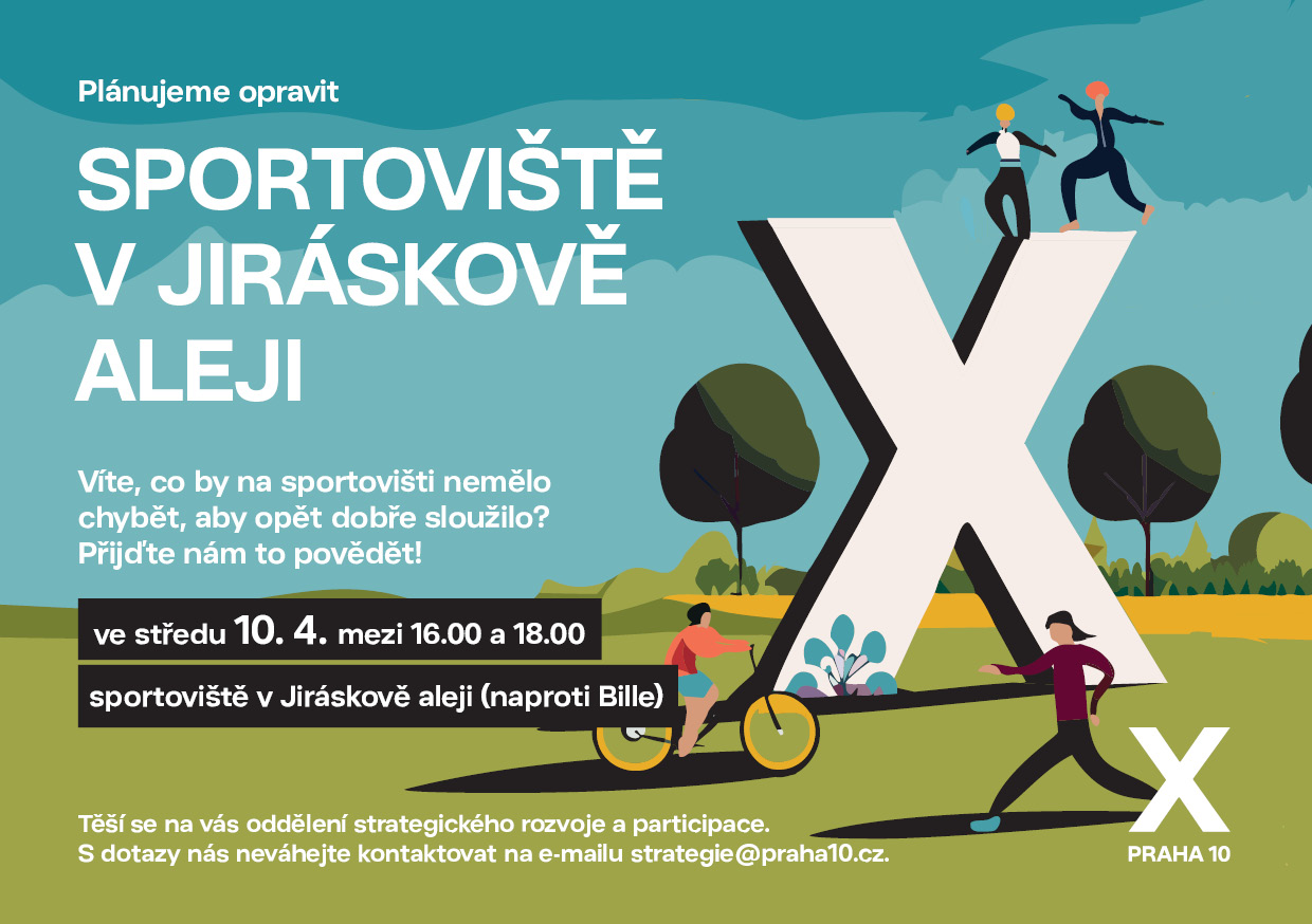 Zveme všechny sousedy a sousedky z blízkého okolí plácku v Jiráskově aleji (naproti Bille) na setkání k jeho revitalizaci. Přijďte nám říct, jak byste si novou podobu sportoviště představovali a jak byste chtěli toto místo využívat.