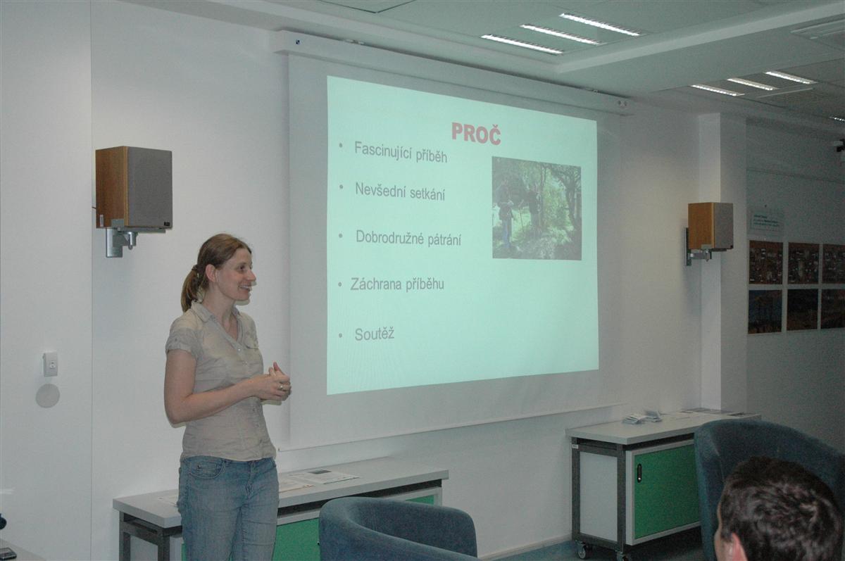 Následovala přednáška paní Magdalény Benešové z občanského sdružení Post Bellum, ve které přibližila projekt Příběhy našich sousedů, na kterém Praha 10 s tímto občanským sdružením spolupracuje.. projekt Příběhy našich sousedů pracuje s novou metodu, jak žákům základních škol v Praze 10 obohatit vědomosti poutavou formou, a zároveň přispět ke zmapování historie nejen naší městské části, ale i celé České republiky. Projekt je založen na oslovování pamětníků a čerpání informací z veřejně dostupných zdrojů. Celá badatelská práce žáků je zaznamenávána pomocí audio techniky. Veškeré výstupy z této práce budou následně uveřejněny na portálu Paměť národa - http://www.pametnaroda.cz.