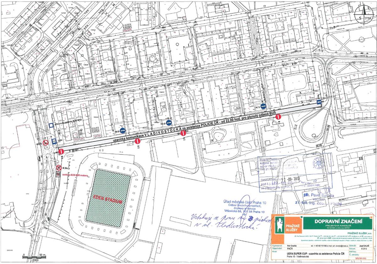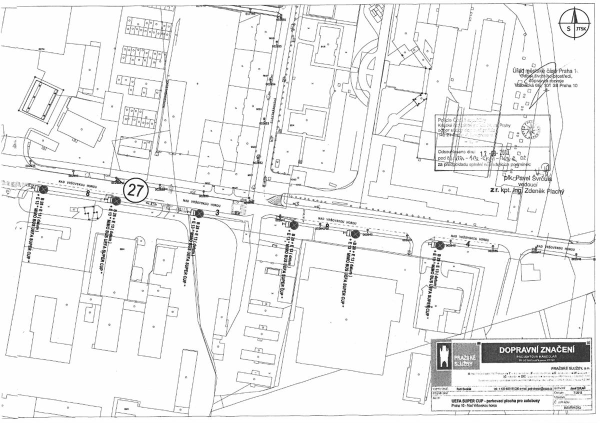 Z důvodu konání akce Superpohár UEFA 2013 na stadionu v Edenu bude dne 30. srpna 2013 zakázáno zastavení v ulicích Nad Vršovskou horou a v ulici V Olšinách (zajištění místa pro autobusy pořadatele).