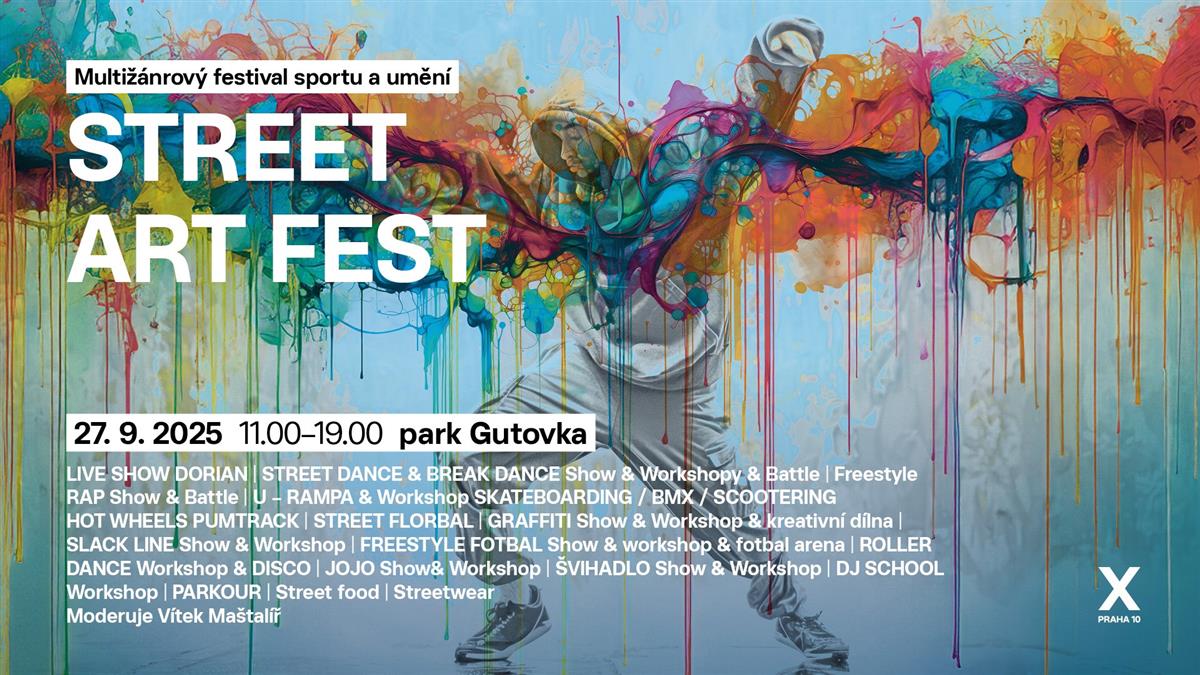 Areál Gutovka se v sobotu 27. 9. 2025 od 11:00 do 19:00 promění v jedinečnou scénu plnou energie, kreativity a zábavy. STREET ART FEST nabídne návštěvníkům den nabitý městskými sporty, tancem, hudbou, výtvarným uměním i sociálně preventivním programem. Festival propojí komunitu mladých tvůrců, sportovců, tanečníků a umělců, kteří se společně postarají o nezapomenutelnou atmosféru.