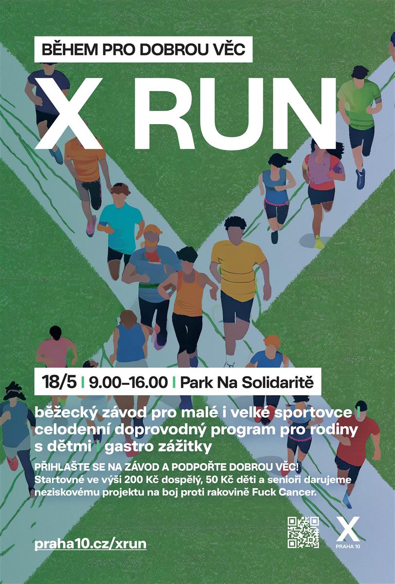 První ročník rodinného závodu X RUN, běhu pro dobrou věc, se uskuteční v sobotu 18. května. Pro malé i velké závodníky je v parku Na Solidaritě, v docházkové vzdálenosti od metra Strašnická, připravený bohatý doprovodný program. Hlavní závod se poběží na 5 kilometrů, na děti čekají kratší distance. Spoluorganizátorem akce je sdružení Fuck Cancer.