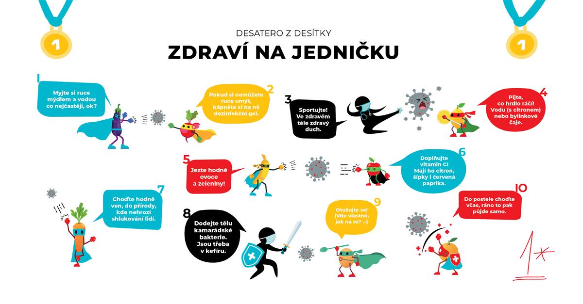 Zdraví na jedničku, tak městská část Praha 10 nazvala osvětovou kampaň zaměřenou na děti. Do všech svých základních a mateřských škol umístí bezdotykové dezinfekční stojany, které doplní speciálně zpracované desatero s radami týkajícími se hygieny a prevence nemocí. Stojany a plakáty budou instalovány začátkem září a budou k dispozici minimálně do konce roku.