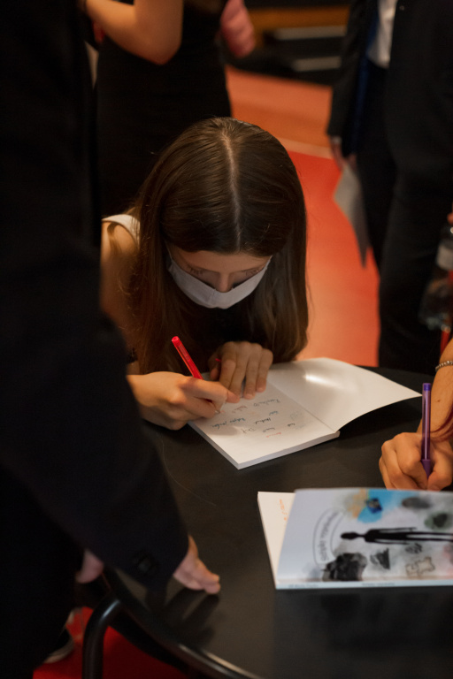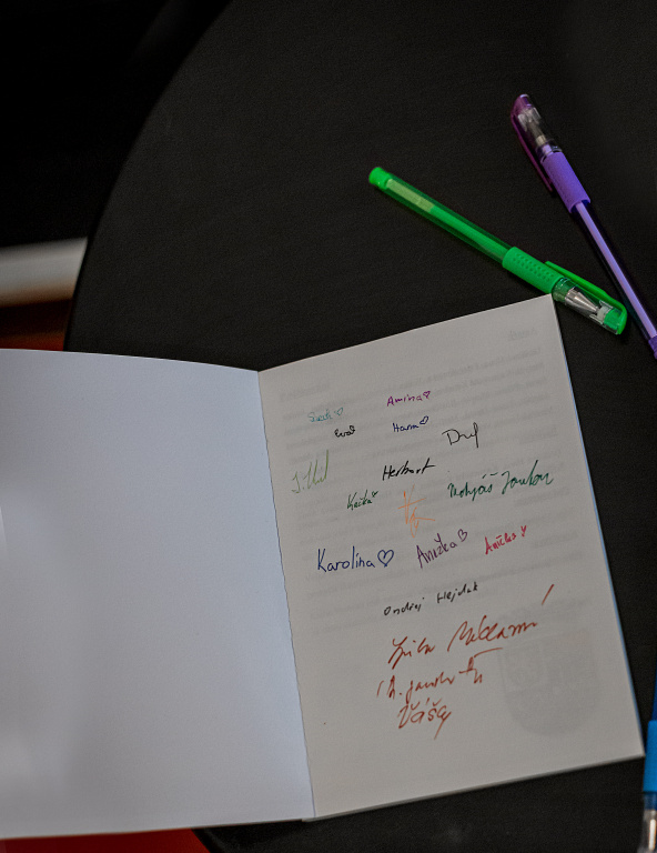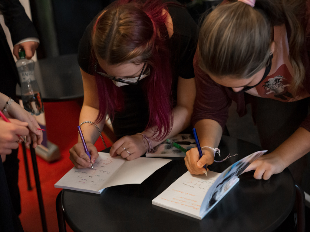 Ve středu proběhly v divadle Mana autogramiáda a křest knihy Střípky vyprávění. Tu tvořili žáci nynější osmé třídy ze ZŠ Karla Čapka (zřizované MČ Praha 10) pod vedením své třídní učitelky Veroniky Dynterové. Knížka, jež vznikala dva roky, je složená ze vzpomínek babiček, dědečků, pratet a dalších příbuzných dětí, mimo jiné obsahuje příběh jedné z posledních lidických žen, která přežila koncentrační tábor.