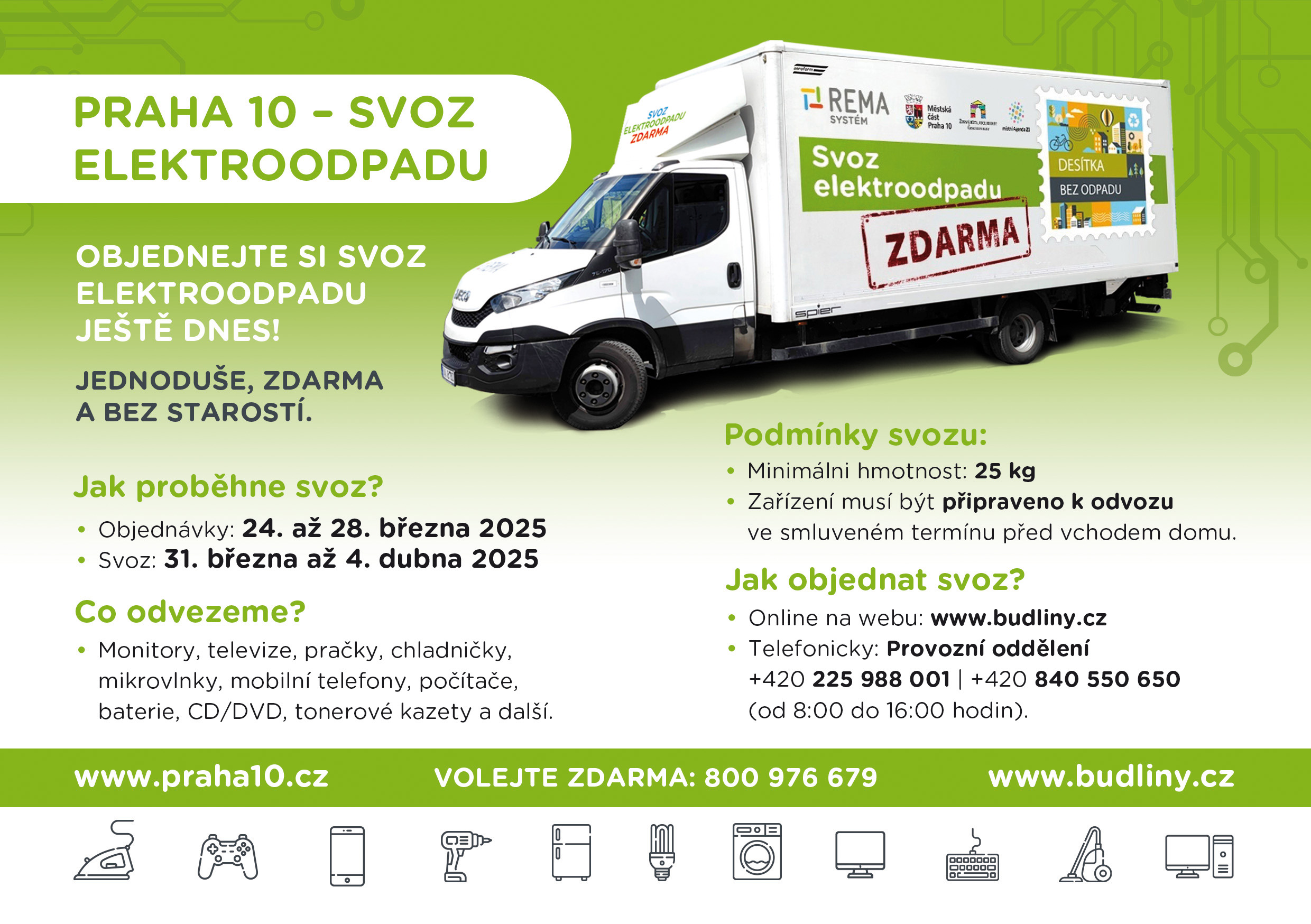 Pozor, obyvatelé Prahy 10! Máte doma starý elektrospotřebič a nevíte kam s ním? Nechte si ho odvézt ZDARMA! Městská část Praha 10, ve spolupráci s kolektivním systémem REMA Systém, vám nabízí tradiční bezplatný svoz elektroodpadu a jeho předání k recyklaci.