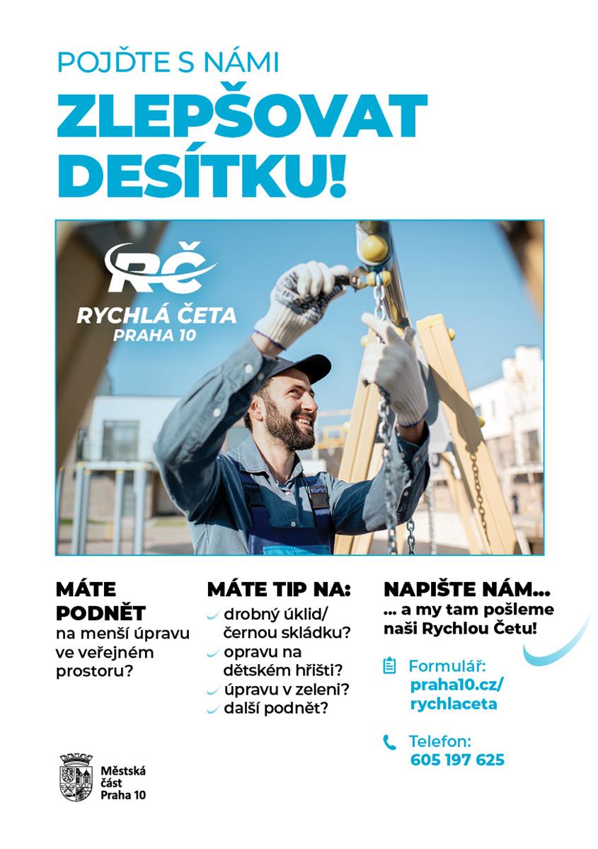 Zažádat o Rychlou četu občané mohou na webu desáté městské části, kde je pro ně připravený jednoduchý formulář. Stačí zadat přesnou lokalitu a popsat zjištěný nedostatek. Radnice zřídila také speciální telefonní linku na čísle 605 197 625. „Prosím o podněty na opravdu jednodušší práce. Složitější opravy či rozsáhlejší rekonstrukce řešíme jinými způsoby. Naši pracovníci jsou takovými ´hodinovými manžely´ pro veřejný prostor,“ říká Jana Komrsková.