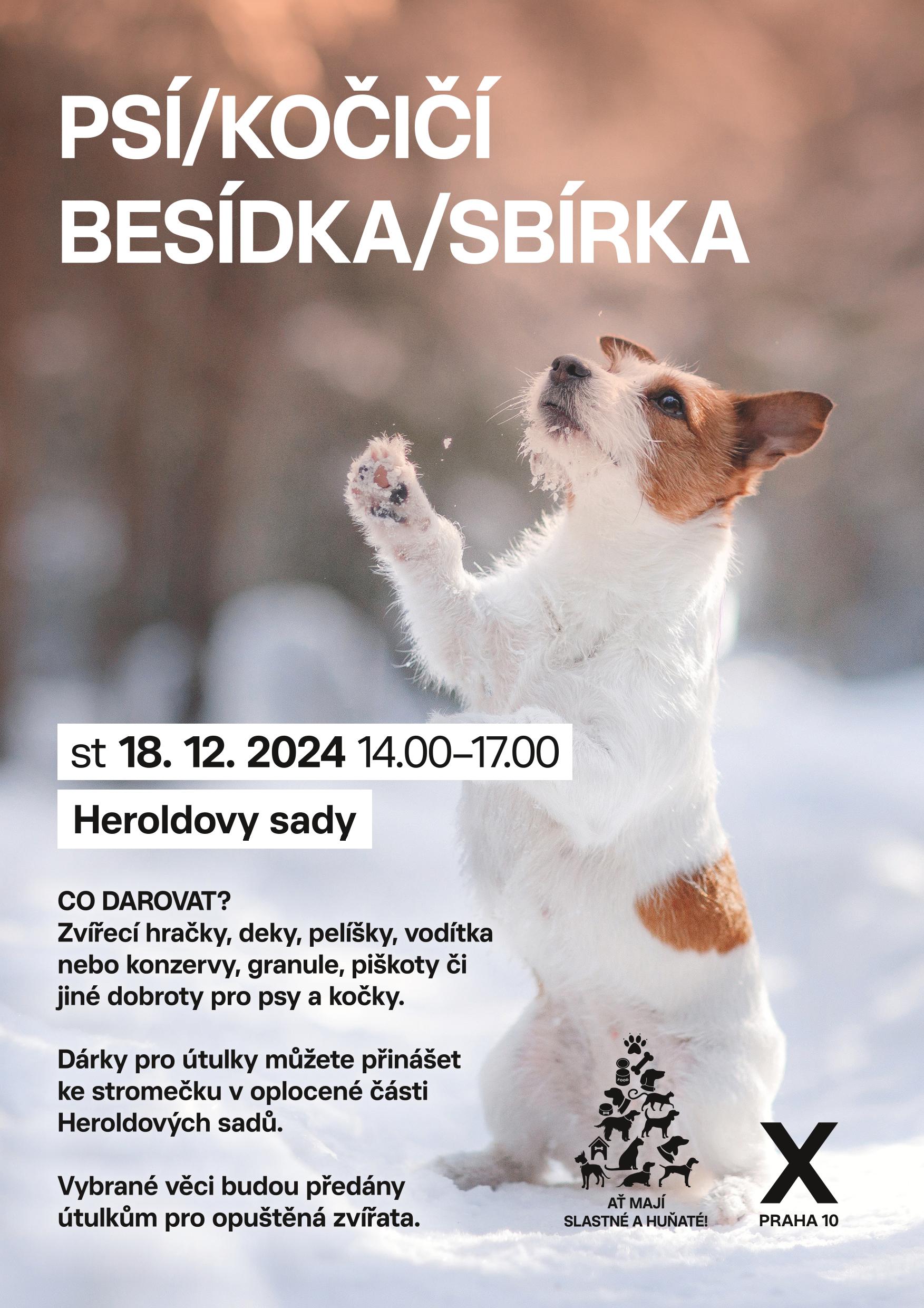 Ve středu 18. prosince 2024 proběhne v době od 14 do 17 hodiny sbírka věcných darů pro psí a kočičí útulky. Při této tradiční akci lze věnovat konzervy pro psy či kočky, granule, piškoty a další pochutiny, deky, zvířecí hračky či třeba již vyřazené pomůcky pro chov psa a kočky. Věci je možné předávat v oplocené části parku v blízkosti zázemí správce.