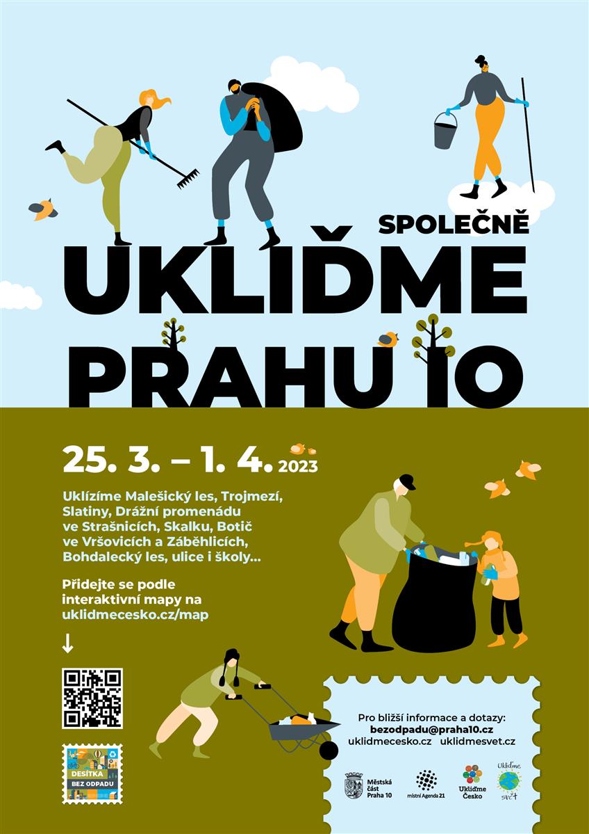 V letošním roce se na Desítce iniciativou „Společně ukliďme Prahu 10“ opět zapojujeme do národních kampaní „Ukliďme Česko“ – www.uklidmecesko.cz a „Ukliďme svět“ – www.uklidmesvet.cz. Obě dobrovolnické kampaně se hlásí k čistotě přírody a dalších veřejných prostor mimo město i v něm. Na naší městské části proběhnou zejména úklidy v tradičních lokalitách v Trojmezí, na Bohdalci, ve Slatinách nebo Malešickém lese, ale také na dalších místech.