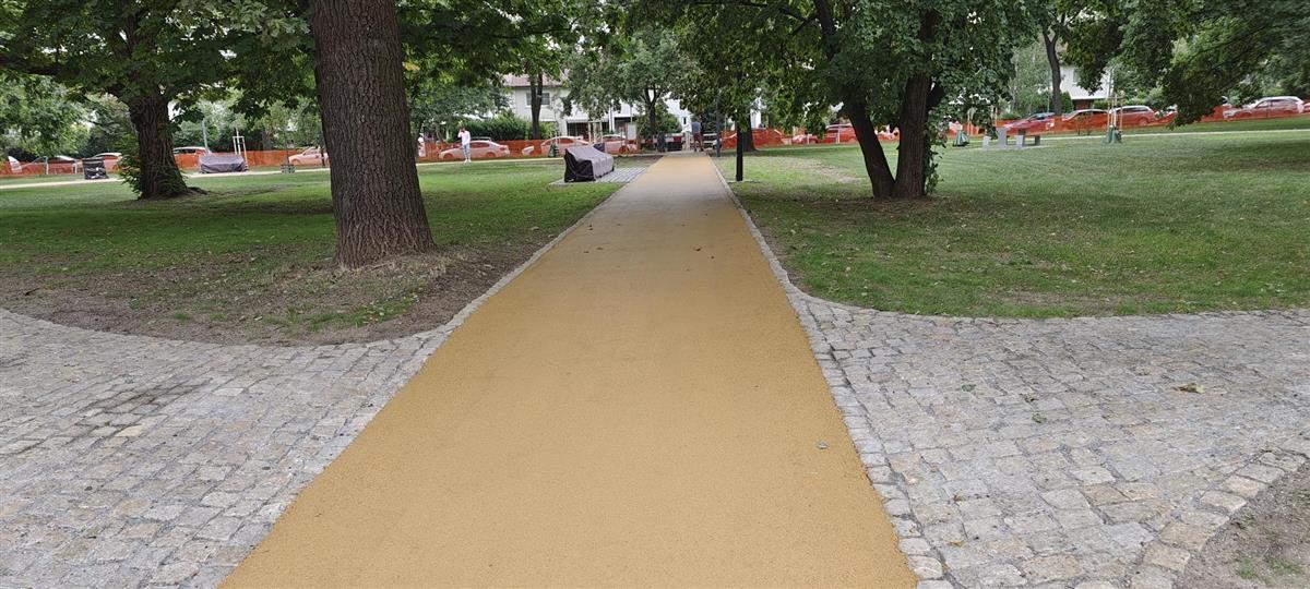"Během revitalizace parku jsme těsně pod povrchem objevili velké svazky kořenů, daleko mohutnější, než jsme očekávali. To komplikovalo další postup, tudíž jsme museli vymyslet, řešení. Varianta pokácet ty stromy pro nás nepřipadala v úvahu. Zvolili jsme řešení využívající technologii, která se u nás sice tolik nepoužívá, ale funguje. Jmenuje se AirSpade. V kombinaci se sacím bagrem umožnila ty kořeny odhalit, odsát zeminu a realizovat speciální ošetření. Nakonec jsme změnili povrch cest. Původně plánovaný asfalt nahradily žulové kostky,“ doplňuje podrobnosti k péči o dřeviny Martin Pecánek, vedoucí odboru životního prostředí ÚMČ Praha 10.