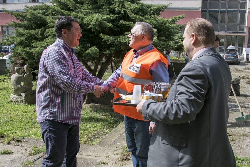 "Chtěli jsme se zapojit do akce Ukliďme Česko, přijeli jsme se všemi deseti zaměstnanci velvyslanectví. Chtěli jsme, aby byla Kazašská ulice reprezentativním místem. Do budoucna z toho plánujeme udělat tradici," vysvětlil Serzhan Abdykarimov, velvyslanec Kazachstánu, který se do úklidu zapojil osobně. Pracovat se začalo brzy ráno, bylo potřeba zejména odstranit trávu, která prorůstala dlažebními kostkami, dále například shrabat listí či nově natřít lavičky a dětské prolézačky. To vše se Kazachům podařilo stihnout během jednoho dne.