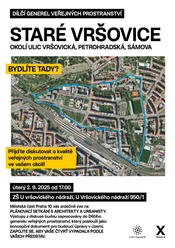 Přijďte diskutovat o kvalitě veřejných prostranství ve vašem okolí. MČ Praha 10 srdečně zve na setkání s architekty a urbanisty. Proběhne v úterý 2. září od 17h v ZŠ U Vršovického nádraží (U Vršovického nádraží 950/1).