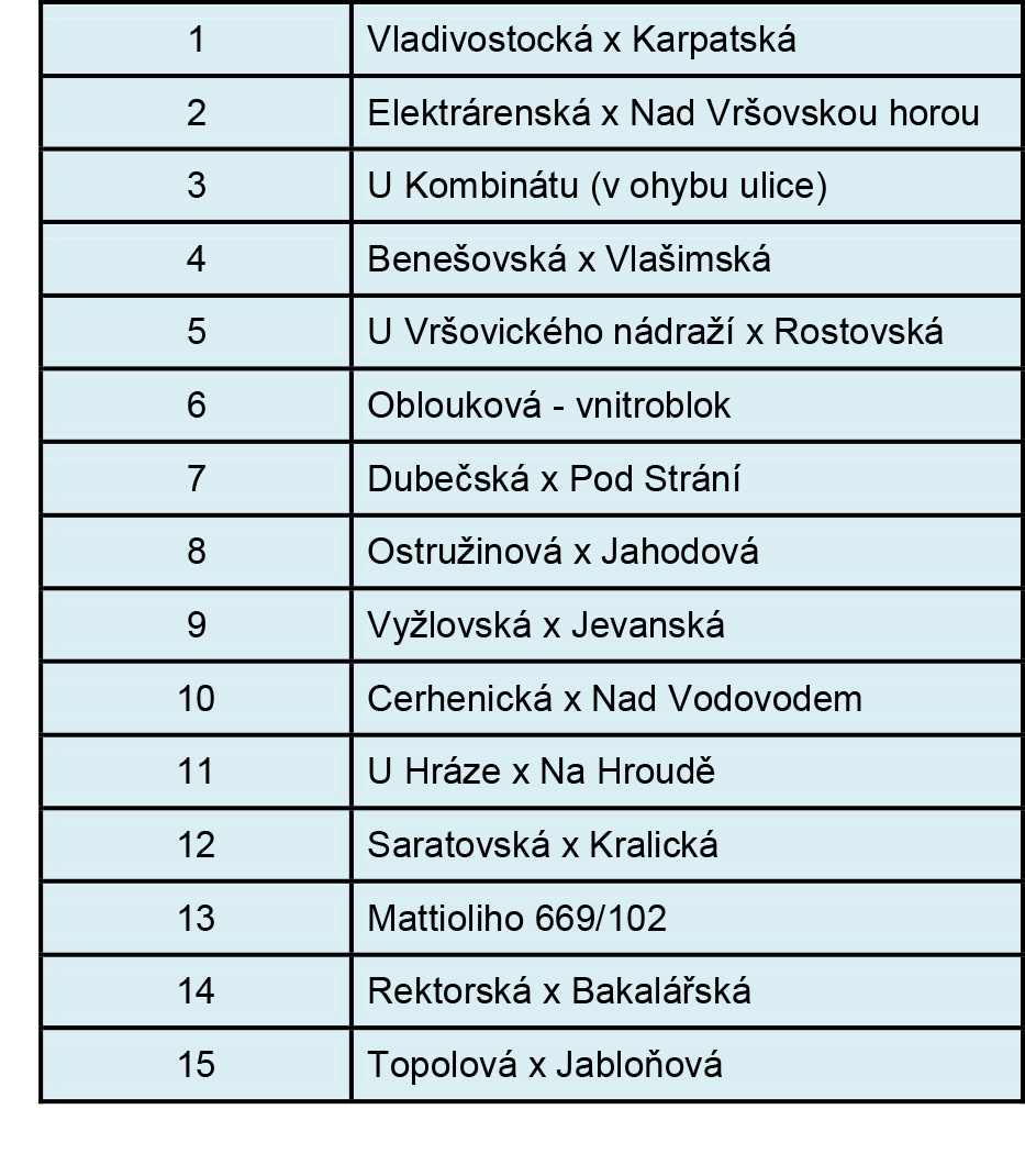 Seznam stanovišť tříděného sběru s nádobou na kovové obaly: