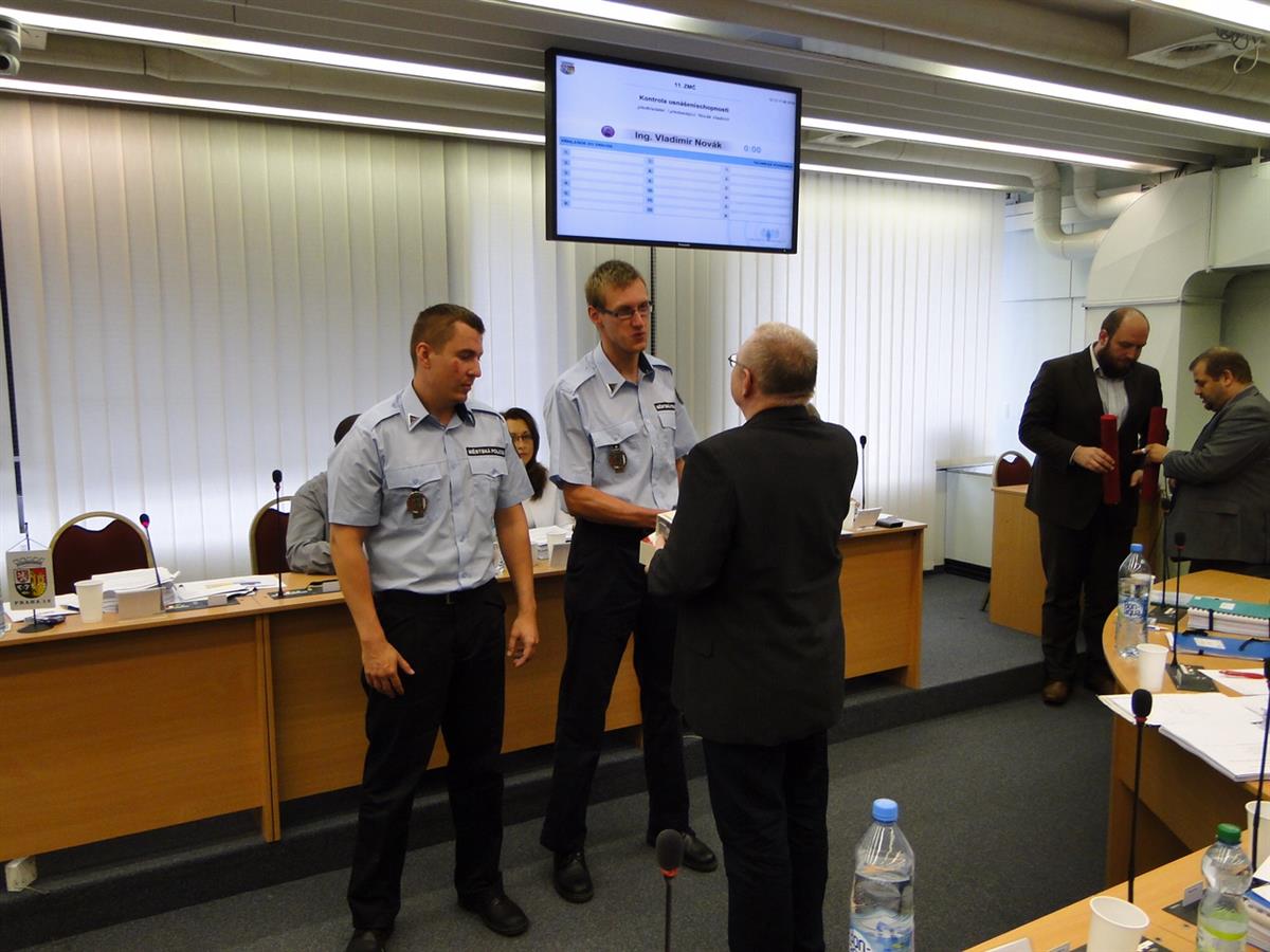 Starosta Vladimír Novák ocenil darem a finanční odměnou strážníky z Městská policie hl. m. Prahy, kteří pohotovým zákrokem zachránili život ženě sražené na přechodu pro chodce. Děkujeme!