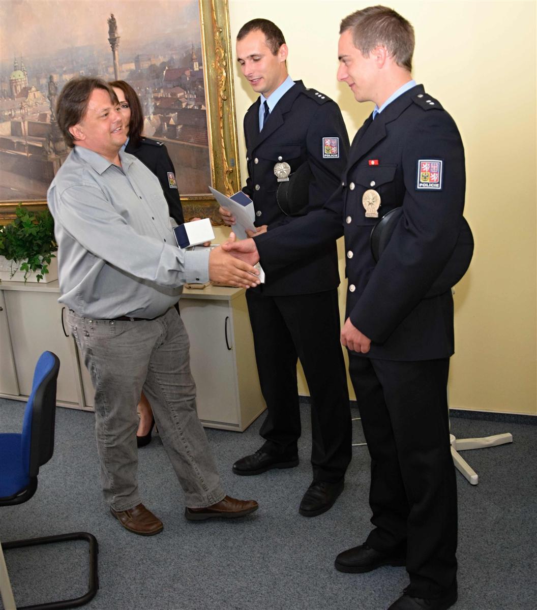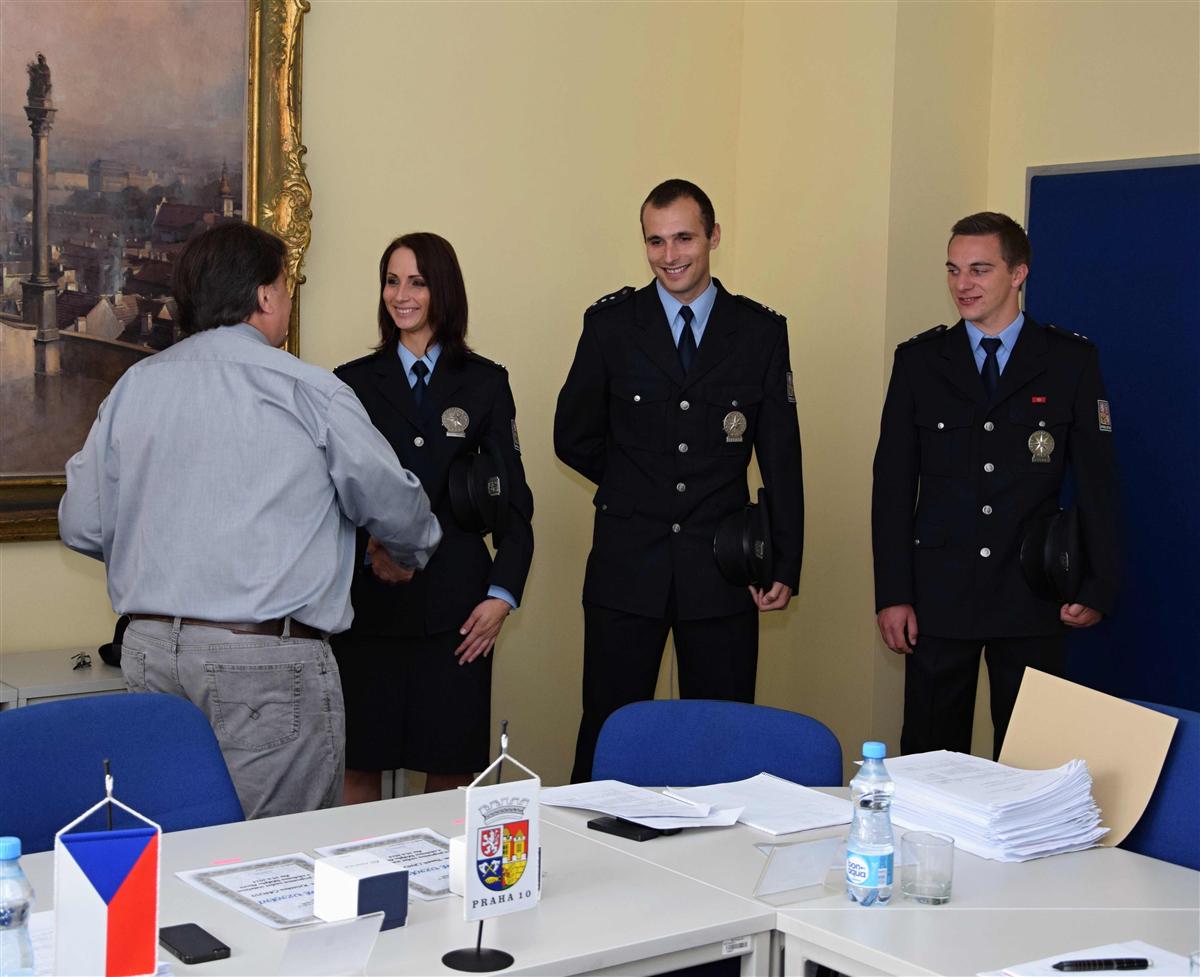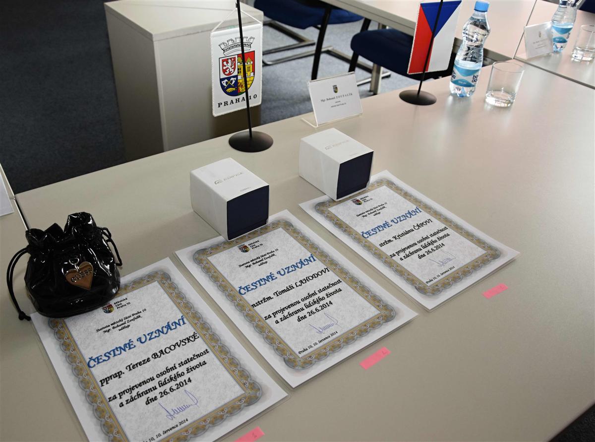 Tři policisty z Obvodního ředitelství Prahy IV - Terezu Bacovskou, Tomáše Lahodu a Kristiána Čápa dnes ocenil starosta Prahy 10 Bohumil Zoufalík (Nez.). Jmenovaní policisté zachránili 26.června život ženě, která se pokusila spáchat sebevraždu. Podezření na sebevraždu oznámil na tísňovou linku zaměstnavatel postižené. Policisté vnikli oknem do objektu, kde doopravdy nalezli podřezanou ženu. Poskytli ji první pomoc až do příjezdu zdravotníků. Podle lékařů by žena jinak nepřežila.