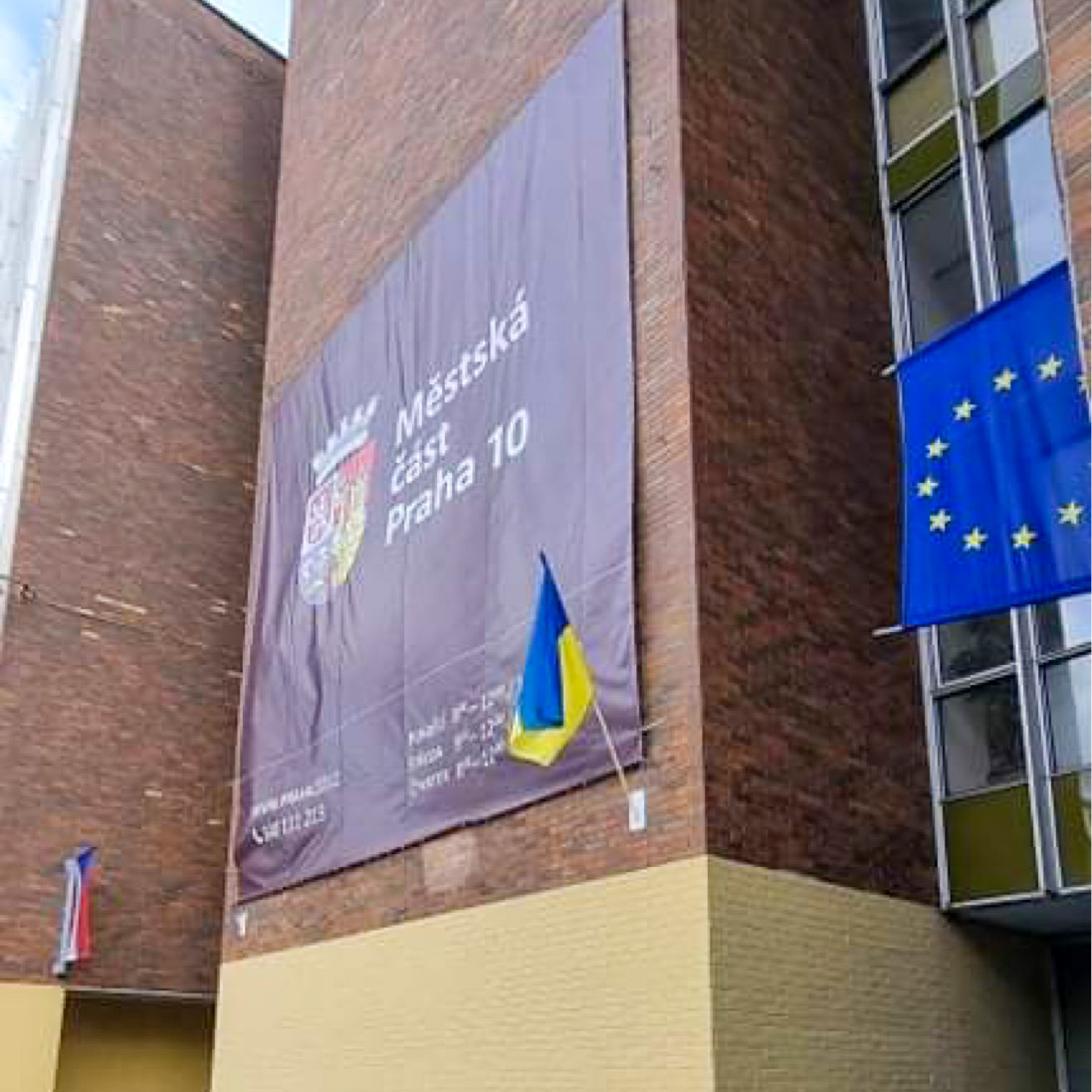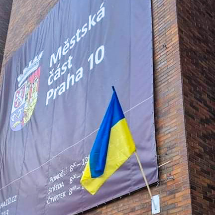 Na vršovické radnici ode dneška visí ukrajinská vlajka. MČ Praha 10 tak vyjadřuje svou podporu zemi, na jejíž území vstoupila ruská armáda.