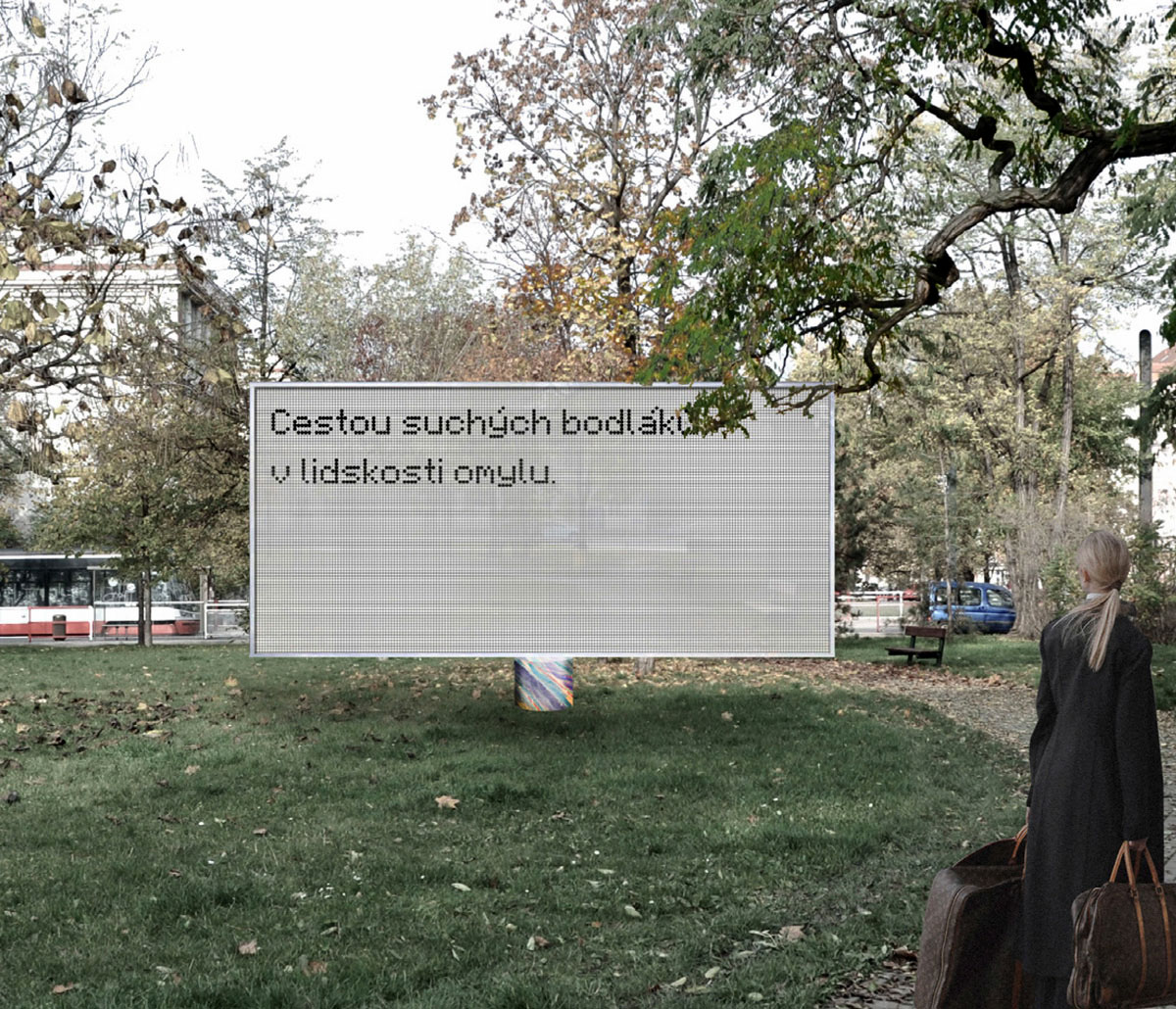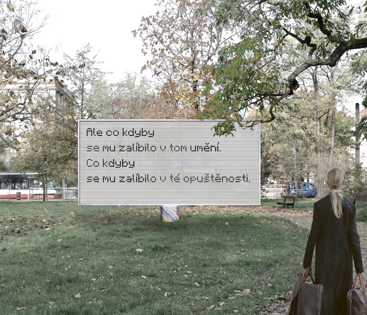 Odkaz uměleckého páru Jiřina Hauková – Jindřich Chalupecký připomene originální dílo. Soutěž o návrh instalace ve veřejném prostoru vyhrál hybridní billboard, který bude kombinací citátů básnířky a teoretika umění vytvářet zcela nové texty. Výsledky unikátní soutěže podpořené z magistrátního programu Umění pro město schválila Rada MČ Praha 10. V parku pojmenovaném po obou osobnostech se dílo objeví v roce 2022.