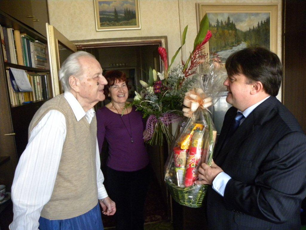 Karel Ziegelheim se narodil 23.10. 1913 v Praze a již 47 let žije v městské části Praha 10. Vyučil se cukrářem, později pracoval jako zlatník. Za celý svůj život nikdy nebyl v nemocnici. "Setkání s těmito lidmi je pro mě vždycky hodně povzbudivé a obdivuhodné. Jejich životní příběhy, když jsi uvědomím, jakou dobou si museli projít a co všechno museli prožít, jsou velmi zajímavé. O to více mě těší, že takovýchto lidí s tímto úctyhodným věkem nám v Praze 10 přibývá. V současné době jich v naší městské části žije přibližně patnáct," dodal starosta Zoufalík.