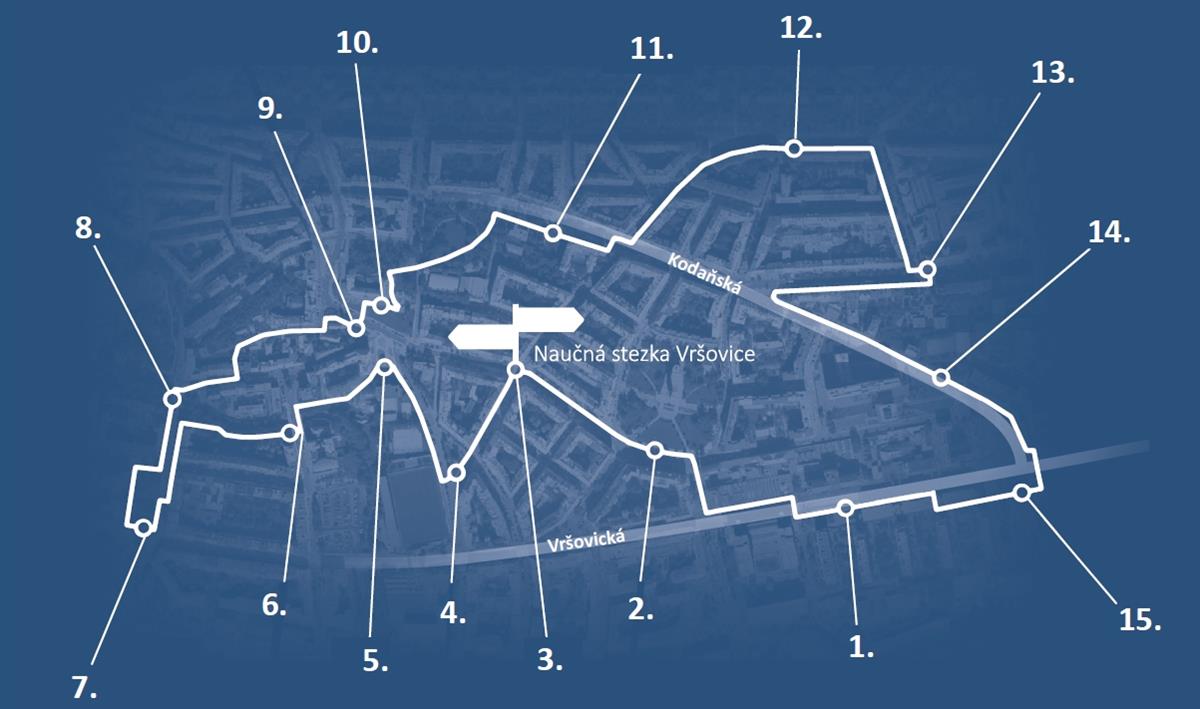 Trasa stezky propojí různorodé části Vršovic – Koh-i-noor, historickou zástavbu Vršovic, činžovní domy, parky, Vršovický zámeček, sportovní areály a další zajímavá místa. Nejen místním obyvatelům představí naučná stezka pestrost a atraktivitu jednotlivých míst, ale i celé čtvrti.