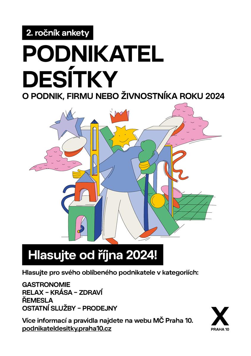 Městská část Praha 10 spouští II. ročník ankety Podnikatel Desítky pro rok 2024. Ambicí tohoto projektu je podpora malého a středního podnikání, propojení místní podnikatelské komunity a prezentace příkladů dobré praxe. Zákazníci a občané z Desítky mají možnost svými hlasy ocenit své oblíbené podniky, provozovny, služby a řemeslníky.